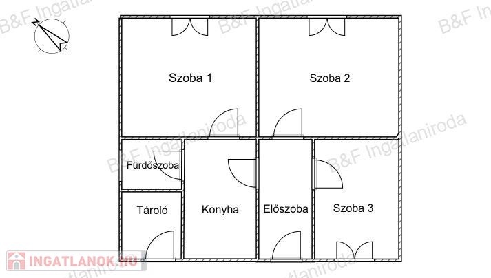 - 3 szoba: 25,4 m2, 21,15 m2, 8,5 m2