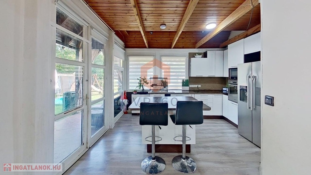 Alsó szinten hatalmas, napfényes nappali, konyha és étkező egy légtérben