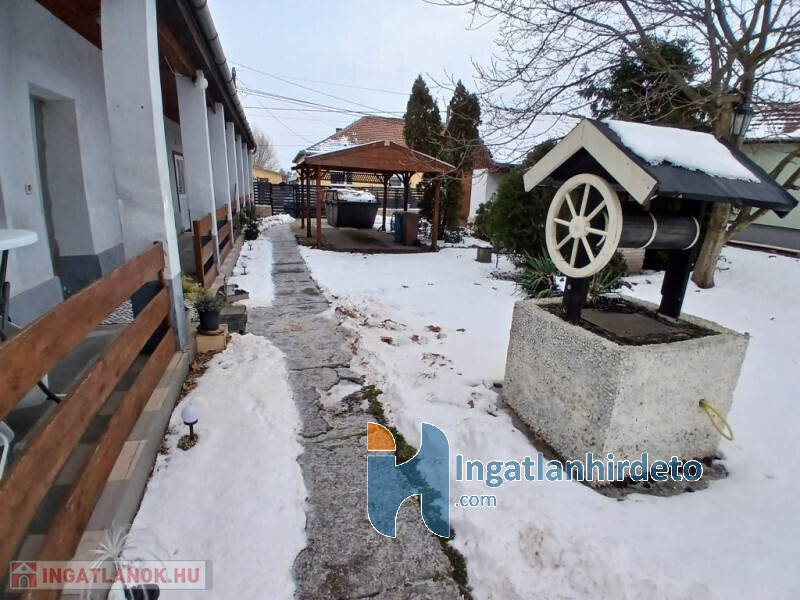 Elhelyezkedése: Belterület Tájolása: Dél-keleti tájolású Állapota: Használt - felújított Komfort besorolása: összkomfortos Építési éve: 1965 Alapterülete: 75 m2 Telekterülete: 4 400 m2 Szobák száma: 3szoba Felújított: Felújított Felújítás éve: 2026 Felújítás során elvégzett munkák: Festés, Tapétázás, Csempe csere, Járólap csere, Parketta csere, Belső átépítés, Utólagos vízszigetelés Közművek: Gáz, Víz, Villany, Csatorna Gázellátás: Vezetékes Vízellátás: Vezetékes víz Áramellátás: 230V Fűtés módja: Gáz Fűtés típusa: Konvektoros Homlokzat állapot: átlagos Építési mód: Vályog, Vegyes falazat Tető formája: Magas Tető anyaga: Cserép Parkolási lehetőség: Garázsban, Utcán, Telken Kilátás: Utcafronti kilátás, Udvari kilátás Napelem: Nincs Jellemzői: Alacsony rezsi, Csendes környék, Jó közlekedés, Két bejárat, Étkező, Udvari terasz, Beépített szekrény, Beépített konyhabútor, Autóbeálló, Kert, Kerítés, Saját fúrt kút, Zöldterület, Jó közbiztonság Energetikai besorolás: Nincs adat Egyéb jellemzők: Terasz, Melléképület Tv, Internet: Kábeltévé, Internet, Vezetékes telefon Közelben: Iskola, Óvoda, Vasútállomás, Autóbuszállomás, Helyi autóbuszállomás, Orvosi rendelő, Bolt, Gyógyszertár, Postahivatal, Vendéglátó egység, Autópálya Rezsi költség(Ft): 40000 Terhelések: Tehermentes ingatlan Eladásra vonatkozó információk: Az ár tartalmazza a teljes berendezést, Azonnal beköltözhető