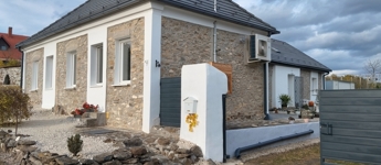 A DNY-i tájolású, földszintes ház hasznos alapterülete 110 m2, mely egy konyhát, nappalit és hálószobát, két fürdőszobát, wellness helyiséget és tárolót foglal magába, amelyeket egy közlekedő folyosó köt össze. A szobák méretéről, elosztásáról a mellékelt virtuális túra keretein belül tájékozódhat.