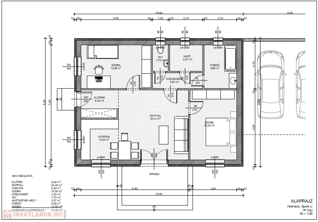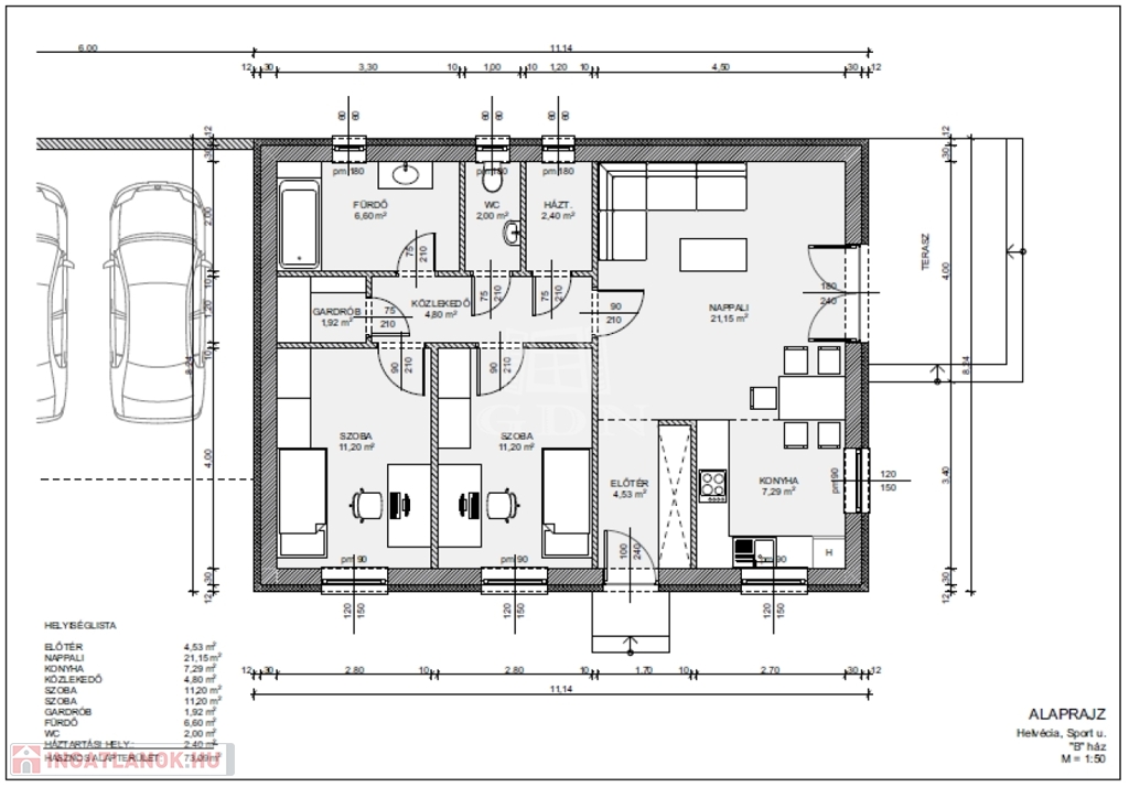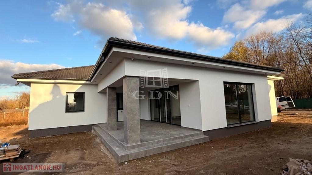 Helvécián eladó egy 71 nm és egy 73 nm, 2 szobás, könnyűszerkezetes ikerház mindkét fele, házanként 420 nm telken.