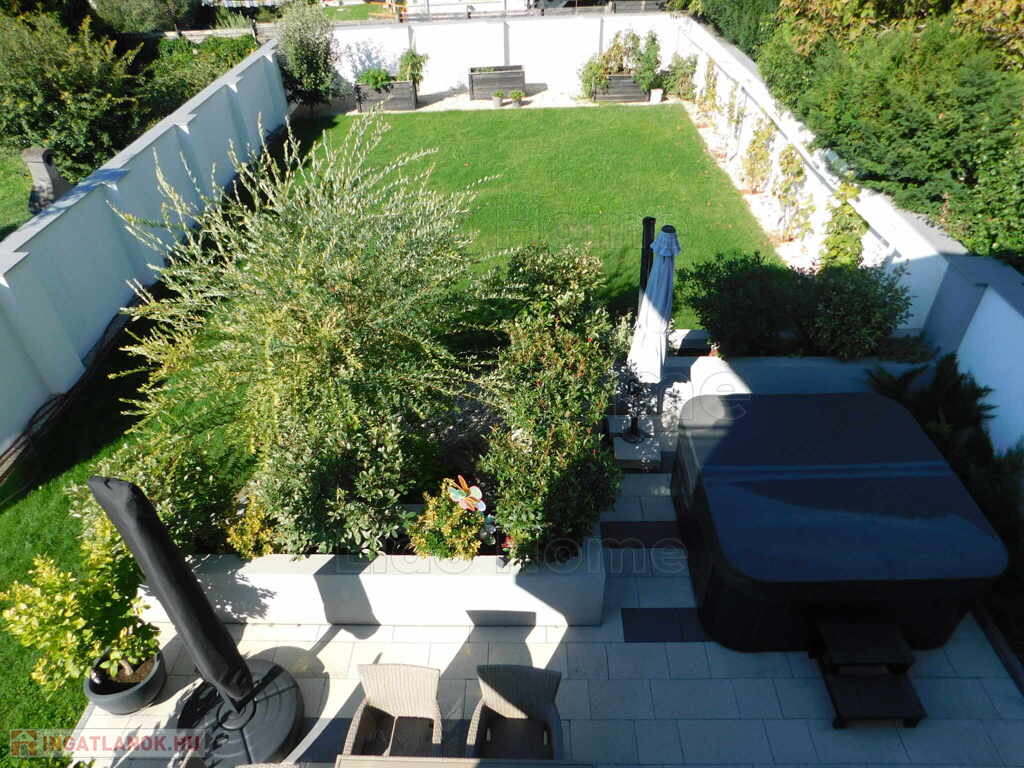 Nagy méretű terasz jakuzzival, infraszauna, kettő emeleti erkély a család kényelmét szolgálja.