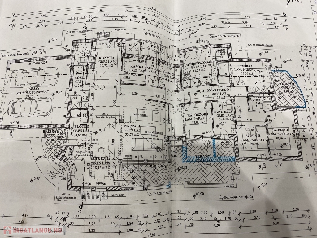 Elosztás: Amerikai konyhás nappali étkezővel, 3 tágas szoba (könnyedén 4-re bővíthető), gardróbszoba, hatalmas mosókonyha és kamra.