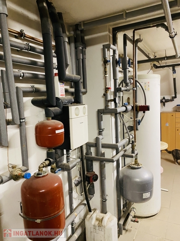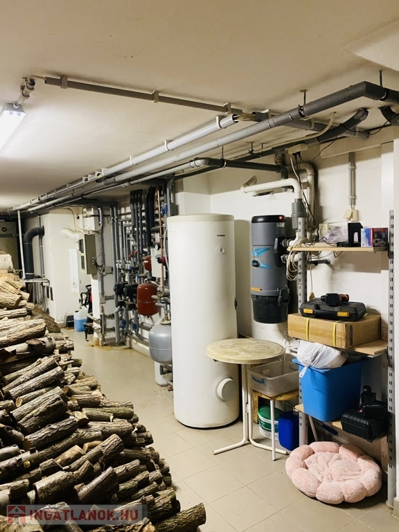 Egyedülálló gépészet: Kondenzációs gázkazán mellett egy bivalyerős faelgázosító kazán is gondoskodik a melegről (padló- és radiátorfűtés).
