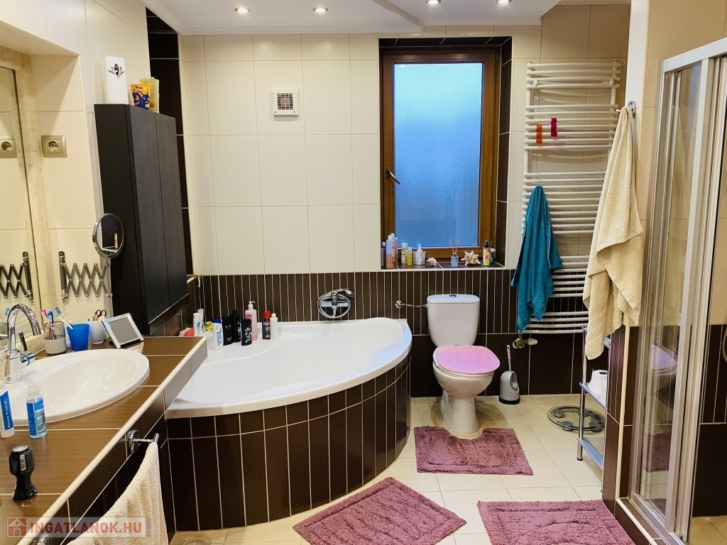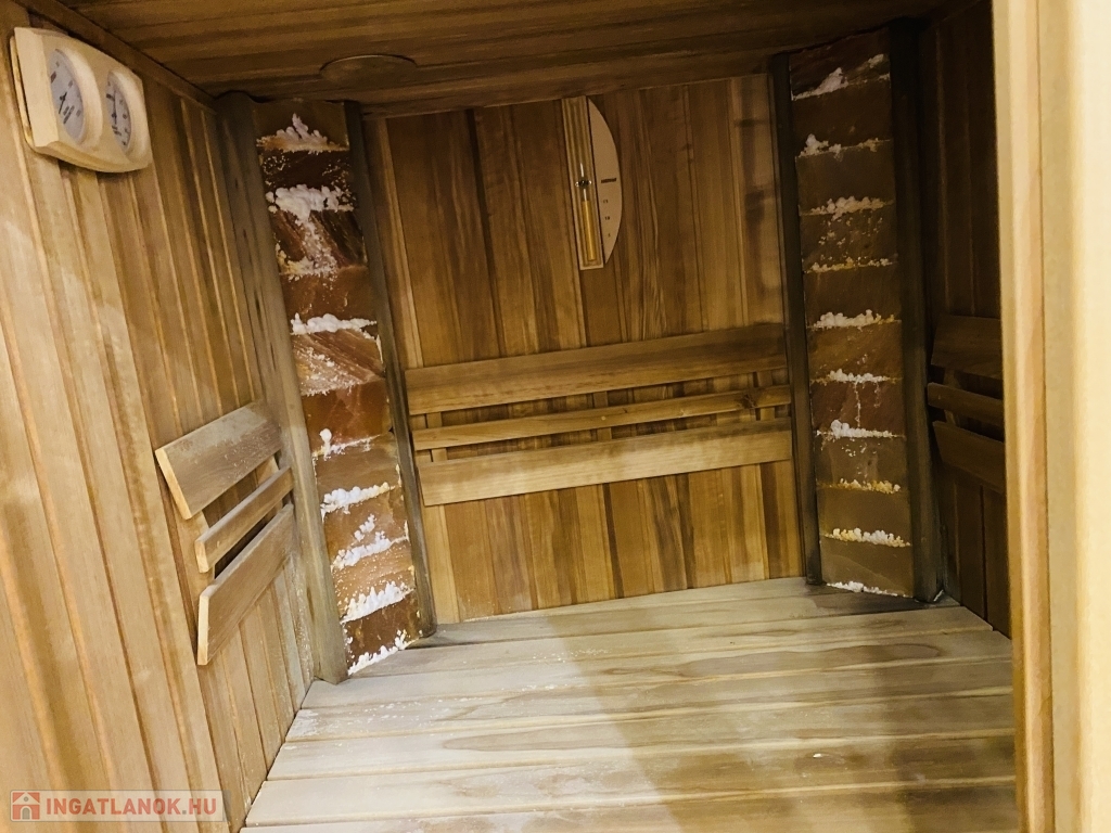 Otthoni SPA: Két fürdőszoba, melyből az egyik egy komplett wellness részleg szaunával, sarokkáddal és zuhanyzóval.