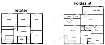 Egész épület alatt szuterén, garázzsal, konyhával, tárolókkal