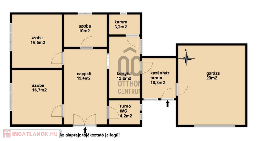- 3 hálószoba, konyha, fürdőszoba-WC, kamra, nappali, kazánház-tároló helyiségekből áll a lakótér.