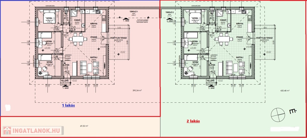 Minden ingatlan 90.39 nm + 15.36 nm terasz + tároló