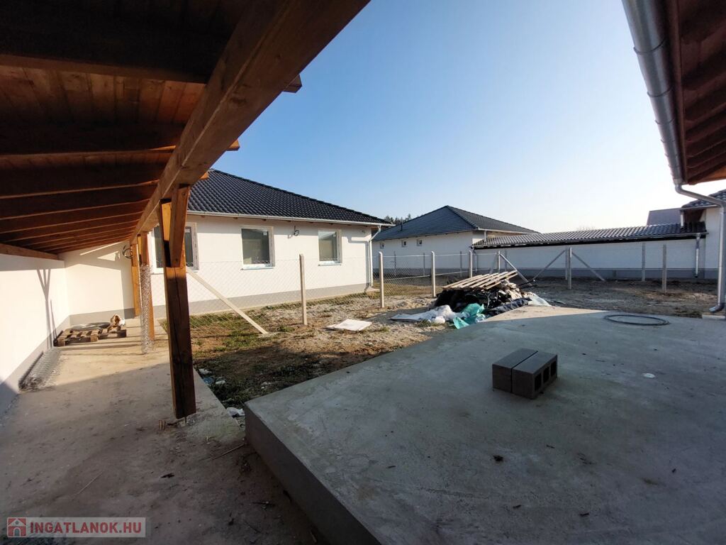 Elosztásuk: előszoba, nappali+ konyha, 3 db. szoba, vendég Wc., fürdőszoba, hátsó terasz, tároló.