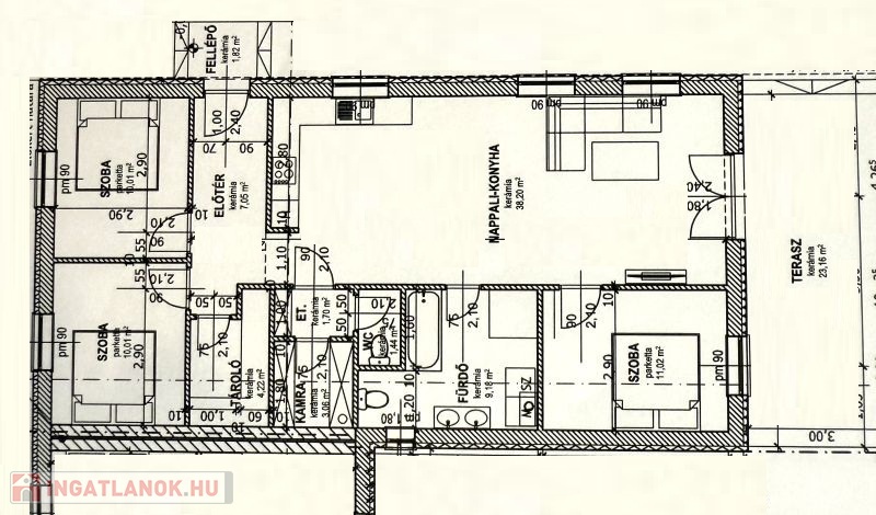 Az ingatlanban 3 különálló szoba, világos nappali-étkező, modern konyha és igényesen kialakított fürdőszoba található. A praktikus elrendezésnek köszönhetően minden családtag számára biztosított a privát tér, miközben a közös életterek tágasak és barátságosak. Háztartási helység, tároló és külön toalett is a komfortot szolgálja.
