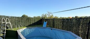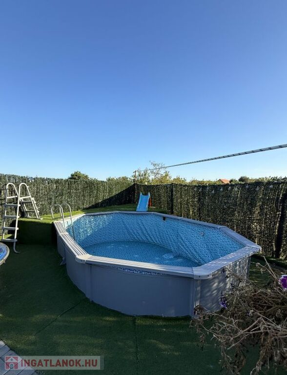 Az épület korszerű építési technológiával készült, alacsony fenntartási költségekkel, energiatakarékos megoldásokkal. A kert kellemes méretű, kiválóan alkalmas pihenésre és kikapcsolódásra. Az egész udvar viacolorral borított, a kert végében található egy klassz medence, valamint a nappaliból egy hatalmas fedett teraszra lehet kilépni.
