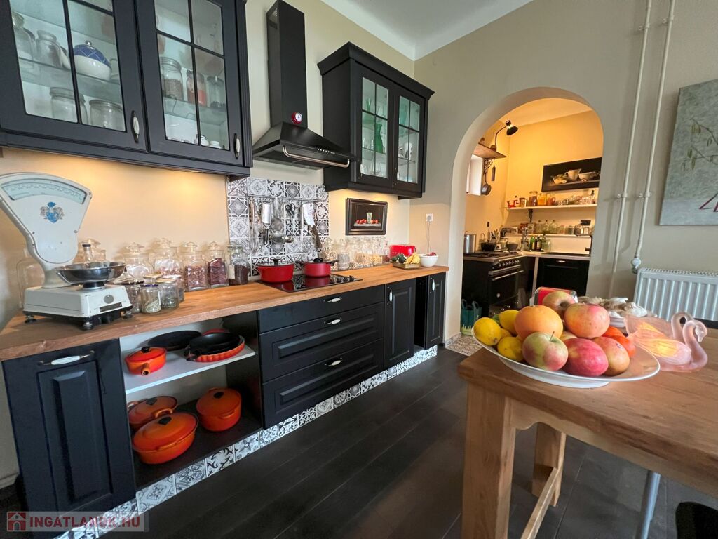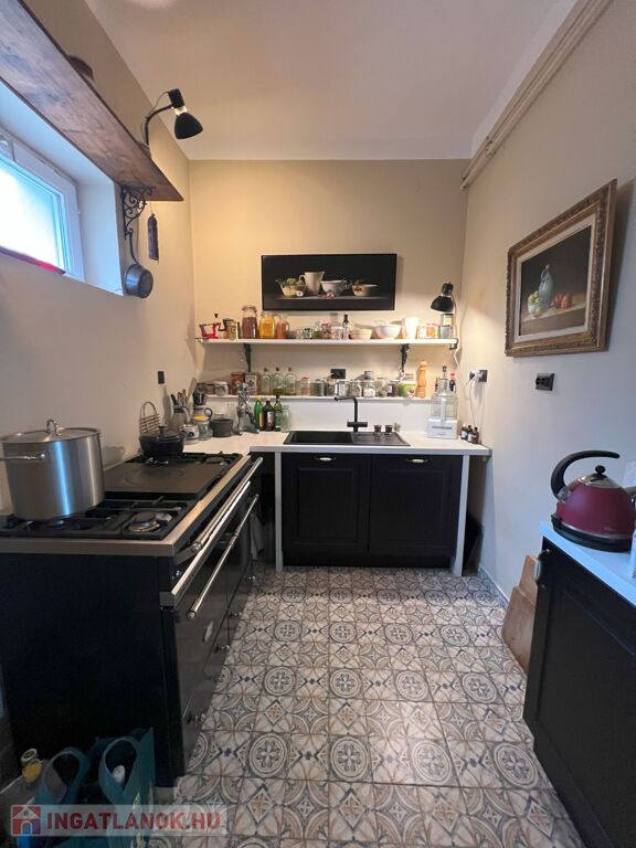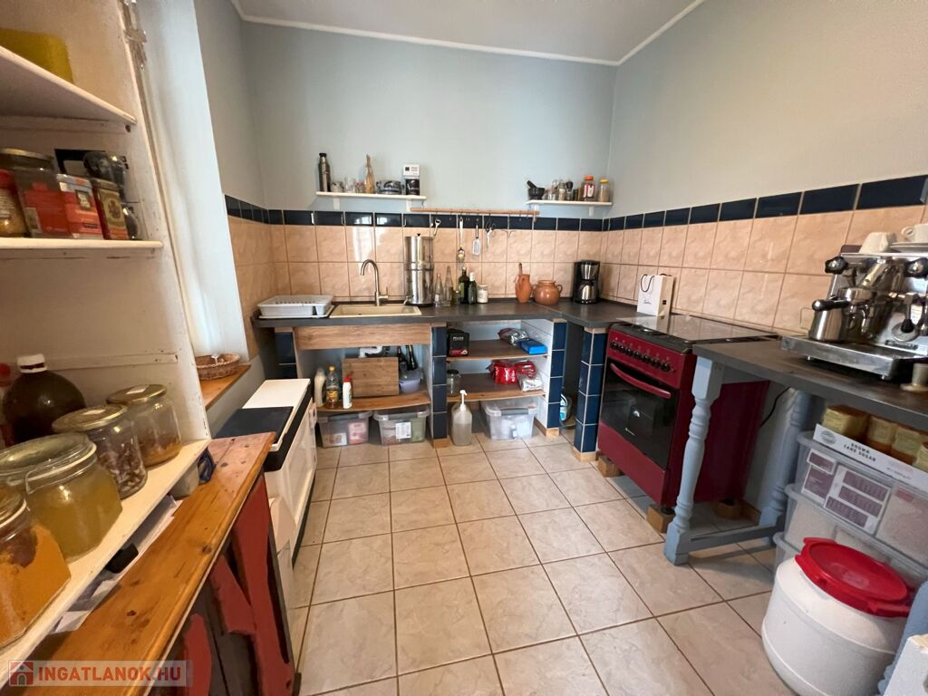 A hátsó, 60 m²-es lakrészben szintén megtalálható egy fürdőszoba, két szoba és egy kis konyhasarok, így akár vendégházként is funkcionálhat.
