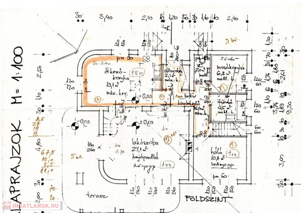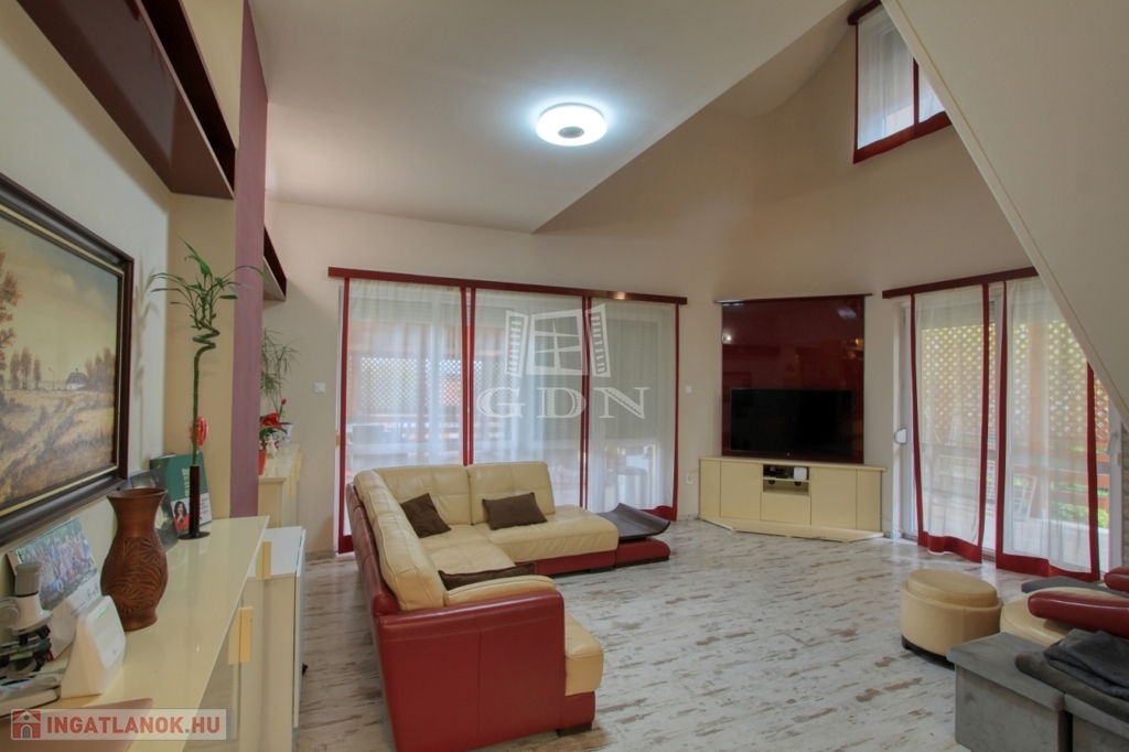 2. szint: földszint (88 m2) galériás nappali, konyha-étkező, előszoba, wc, fürdőszoba, háztartási helyiség, hálószoba + 40 m2-es fedett terasz