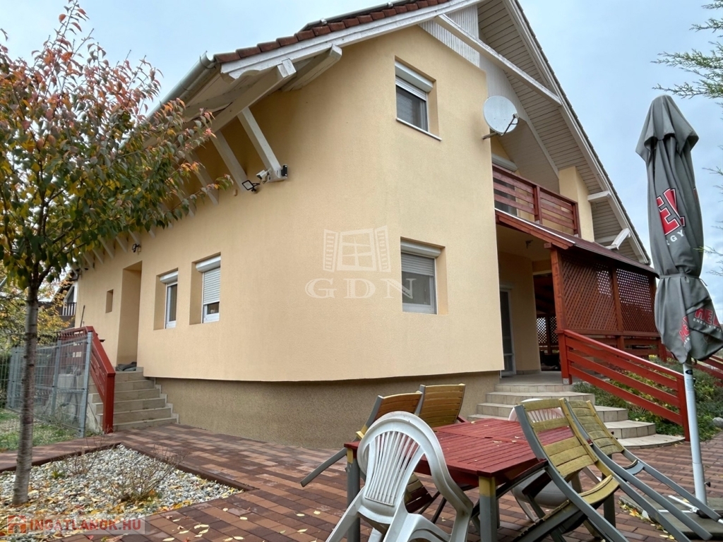 4887. Kápolnásnyéken, Velencei-tóhoz közeli településrészen, 1988-ban épült, 2019-2012 között és 2022-ben felújított, háromszintes, galériás nappali + 4 hálószobás, hőszigetelt, 10 kW napelem rendszerrel rendelkező családi ház, nagy méretű fedett terasszal, az egész épület alatt fűthető szuterénnel, benne garázzsal, parkosított 902 m2-es telken eladó.