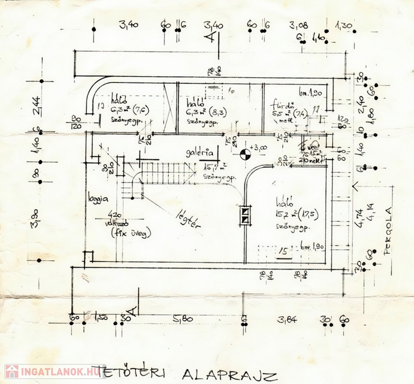 3. szint tetőtér (50 m2 nettó) galéria tér, 3 hálószoba, fürdőszoba + 7 m2 loggia