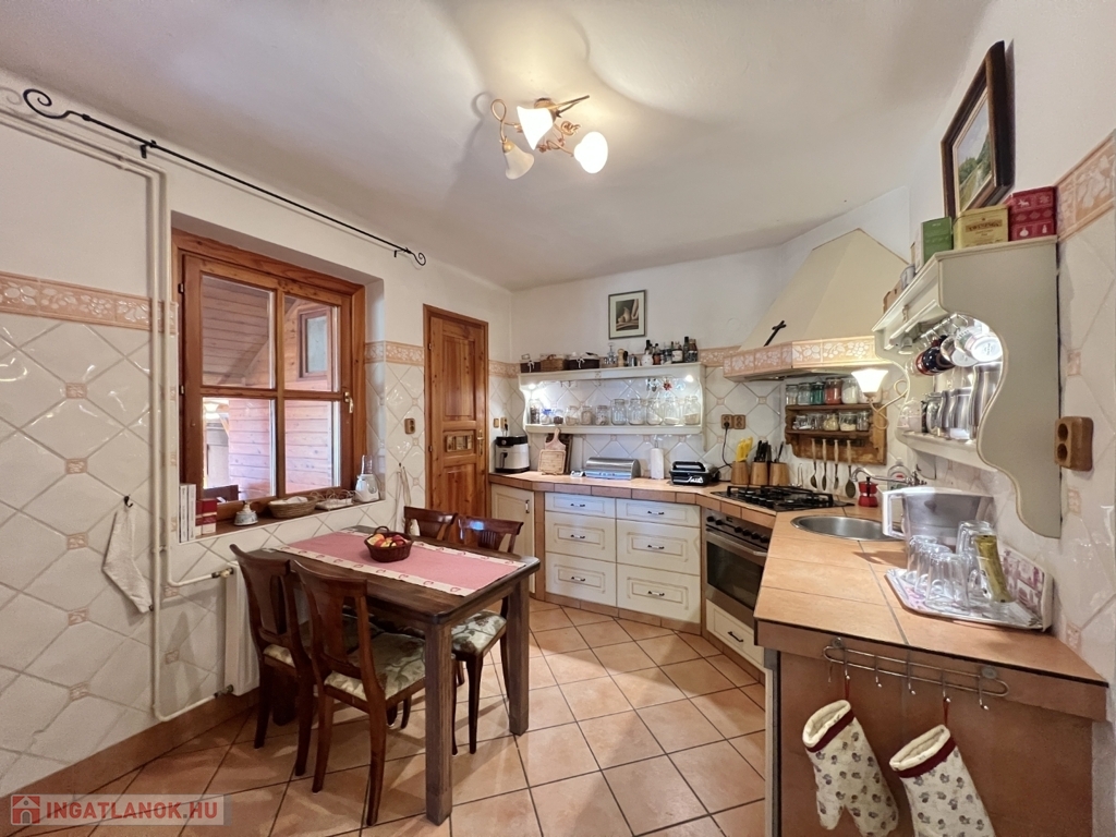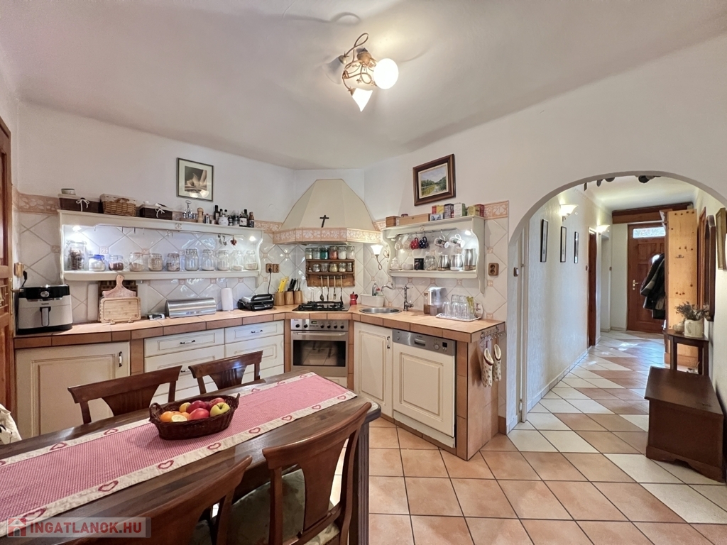 Kaposváron a Toponár városrészben - kifejezetten csendes környezetben lévő - rusztikus stílusban igényesen kialakított hangulatos 160 m2-es családi ház, különálló fedett grillterasszal, - külön lakrészként, vagy vállalkozásnak is használható - 1 szobás mellépülettel, és duplagarázzsal együtt eladó. A lakóház alsó szintjén tágas nappali, étkező, konyha-spájz, fürdőszoba-wc, előszoba, gardrób, továbbá belső udvar felé néző fedett terasz helyiségek kerültek kialakításra, valamint az épület alatt pince, kazánház helyiségek vannak. A tetőtérben 3 szoba-erkély, fürdőszoba-wc, továbbá gardrób helyiségek vannak, az épület fűtése gázközponti és vegyestüzelésű kazánnal, a melegvíz ellátása villanybojlerrel megoldott. A lakóház mögött az udvaron különálló - jelenleg irodának kialakított - melléképület található, amelyben 1 szoba, jelenleg tároló helyiség, wc, valamint szauna-mosókonyha-zuhanyzó vannak, a fűtése kályhával, gázközponti kazánnal -, valamint további igény esetén vegyestüzelésű kazánnal megoldott. Az udvarban két személyautónak alkalmas garázs, tároló-kazánház helyiségek kerültek kialakításra, illetve további gépkocsi, vagy egyéb dolgok tárolására egy 60 m2-es fedett szín is van. Telek: 2.275 m2