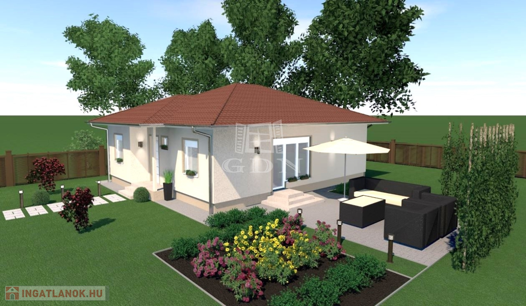 Eladó családi ház modern nyugodt környezetben, csendes, rendezett környéken, nappali + 4 szobás. A ház 91 nm, új építésű, 634 nm telken fekszik. Jelenleg építés alatt áll, így még van lehetőség kisebb módosításokra is. A házban gázcirkó fűtés biztosítja a kellemes meleget a hidegebb napokon, és inverteres klíma a meleg nyári napokra hoz hűsítő kényelmet. A kertre néző kilátás minden évszakban gyönyörű látványt nyújt. A ház kialakítása ideális tágas, világos terek, jól használható szobák, korszerű technikai megoldásokkal. Várható átadás: 2025. október.