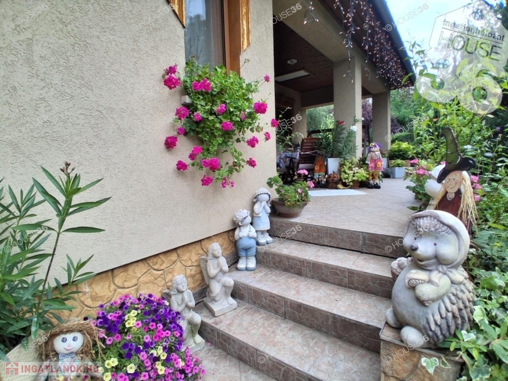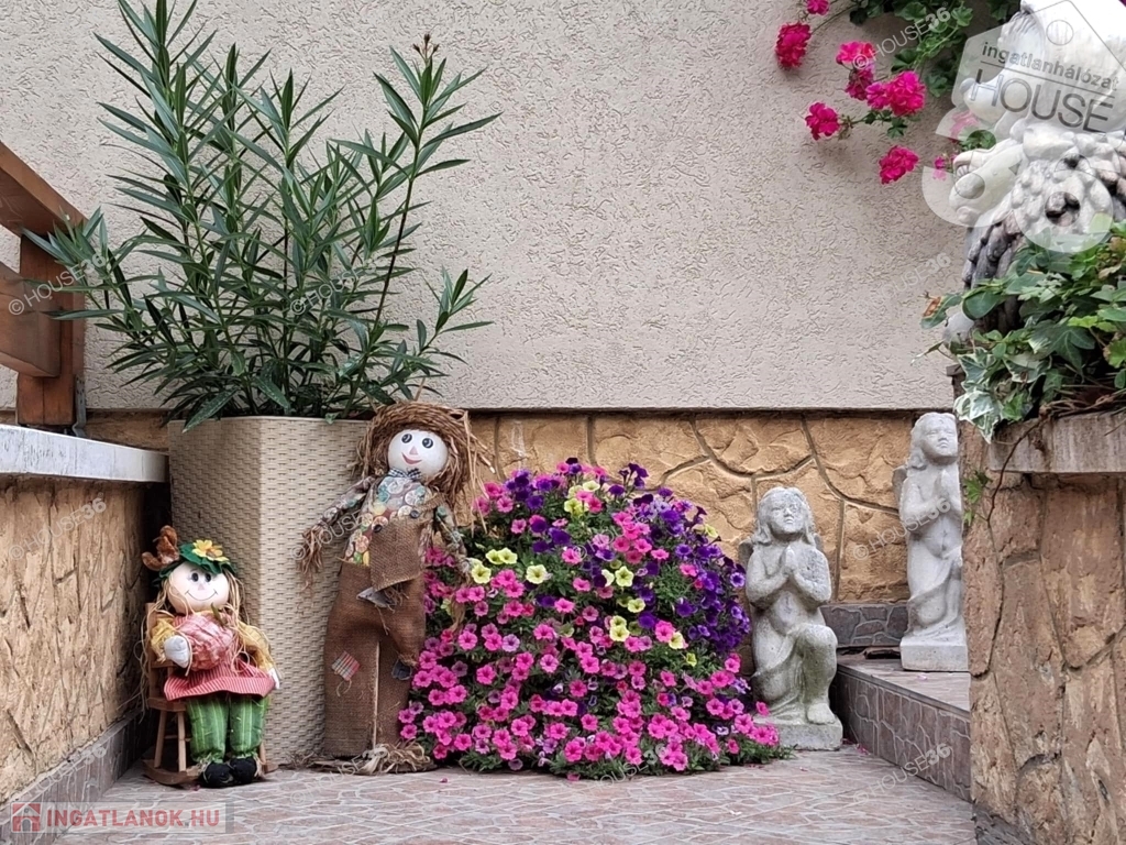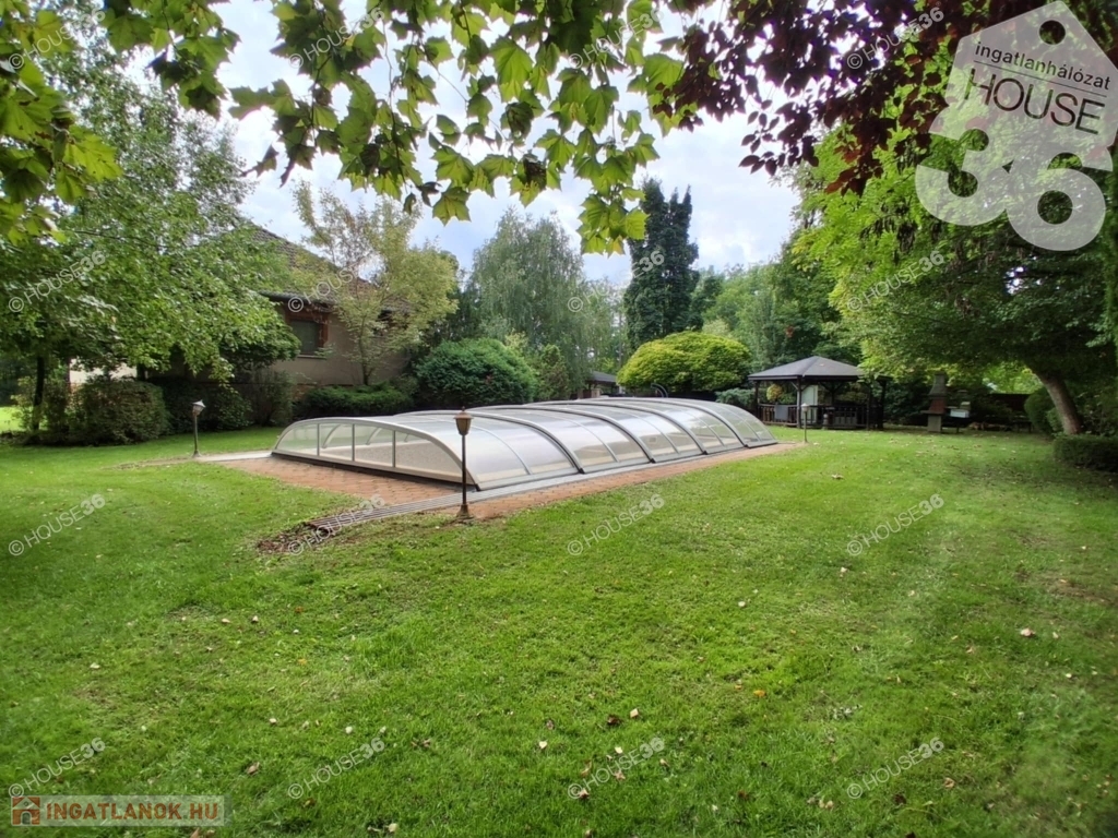 - 3.000 m2 parkosított, automata öntöző rendszerrel, fűthető-fedett medencével, kerti saletli kemencével, elektromos kapuval ellátott területen