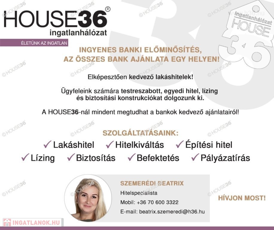 Forduljon hozzám bizalommal amennyiben felkeltette érdeklődését ez a remek lehetőség, ha eladó ingatlana van, illetve ha hitelre van szüksége!Szolgáltatásaink kereső ügyfeleink részére ingyenesek! Figyelem az adatlap megbízónktól kapott adatok alapján készült, pontosságáért felelősséget nem tudunk vállalni!