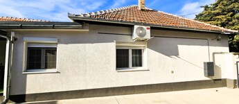 Kiskunhalas kedvelt részén eladó egy 113 m² hasznos alapterületű, igényesen felújított, 2 lakrészes családi ház, 593 m²-es rendezett telken.