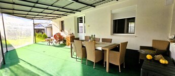 Az 87 m²-es fő lakrészben tágas nappali, 3 hálószoba, konyha, fürdőszoba, WC, spájz és közlekedő található, valamint 38 m²-es fedett terasz tartozik hozzá. A kisebb, 26 m²-es lakrészben 1 szoba, előszoba, konyha és fürdő kapott helyet. A ház alatt 24 m²-es pince is található.