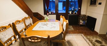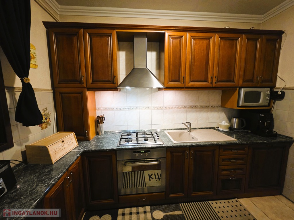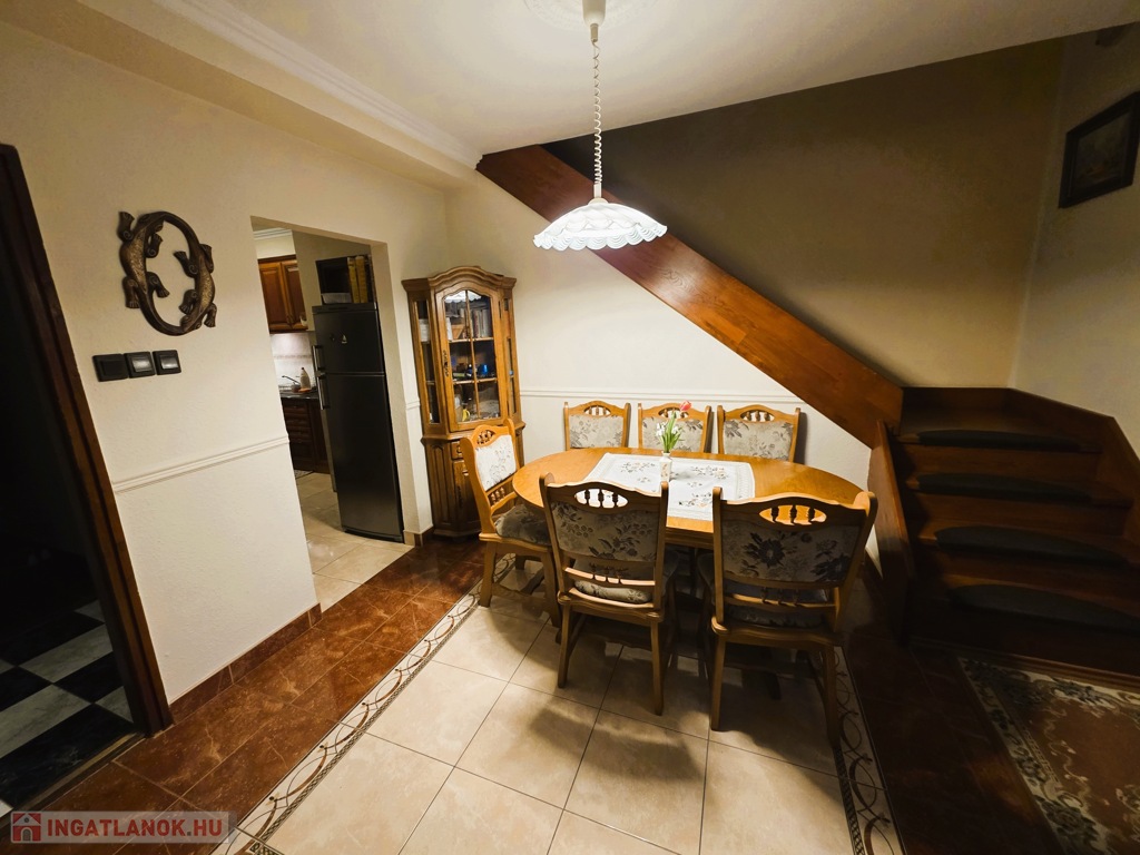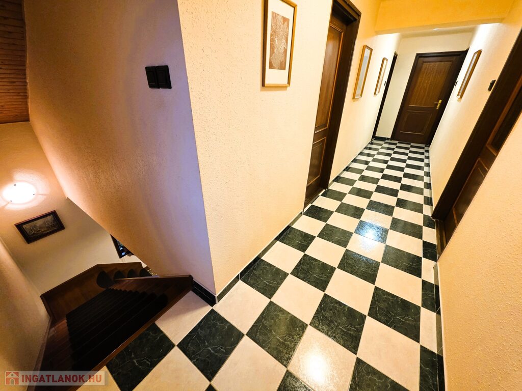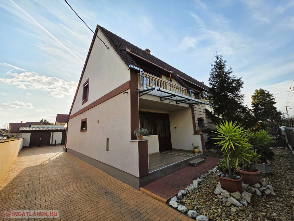 A ház 2021-ben és 2025-ben is felújításon esett át, így kiváló műszaki és esztétikai állapotú. A földszinten nappali, konyha-étkező, fürdő és egyéb kiszolgáló helyiségek, az emeleten 4 hálószoba és fürdő található. Teraszok és erkély is tartozik hozzá.