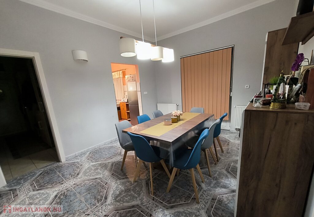 Kiskunhalas belvárosában eladó egy 668 m²-es telken fekvő, 115 m²-es, tégla építésű, folyamatosan karbantartott családi ház, kiváló elhelyezkedéssel. A központi buszmegálló mindössze 50 méterre található, a piac, iskola, óvoda és üzletek pedig néhány perc sétával elérhetők.