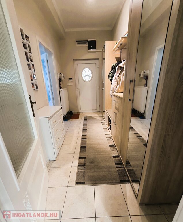 Az ingatlan praktikus elrendezésű: két külön nyíló szoba, nappali, étkező, konyha prémium víztisztító rendszerrel és spájzzal, előszoba, valamint egy 2022-ben teljesen felújított fürdőszoba található benne. Tartozik hozzá külön mosókonyha, 22 m²-es pince, kazánház és egy 12 m²-es fedett terasz is, amely kellemes pihenőhelyet biztosít a kert felé nézve.