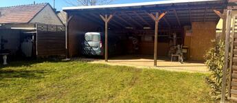 A 445 m²-es telek élhető méretű, könnyen karbantartható, rendezett és körbekerített. Egy kétállásos fedett kocsibeálló és egy kerti tároló tovább növeli a praktikumot, a részben térkövezett beálló pedig kényelmes parkolást biztosít.