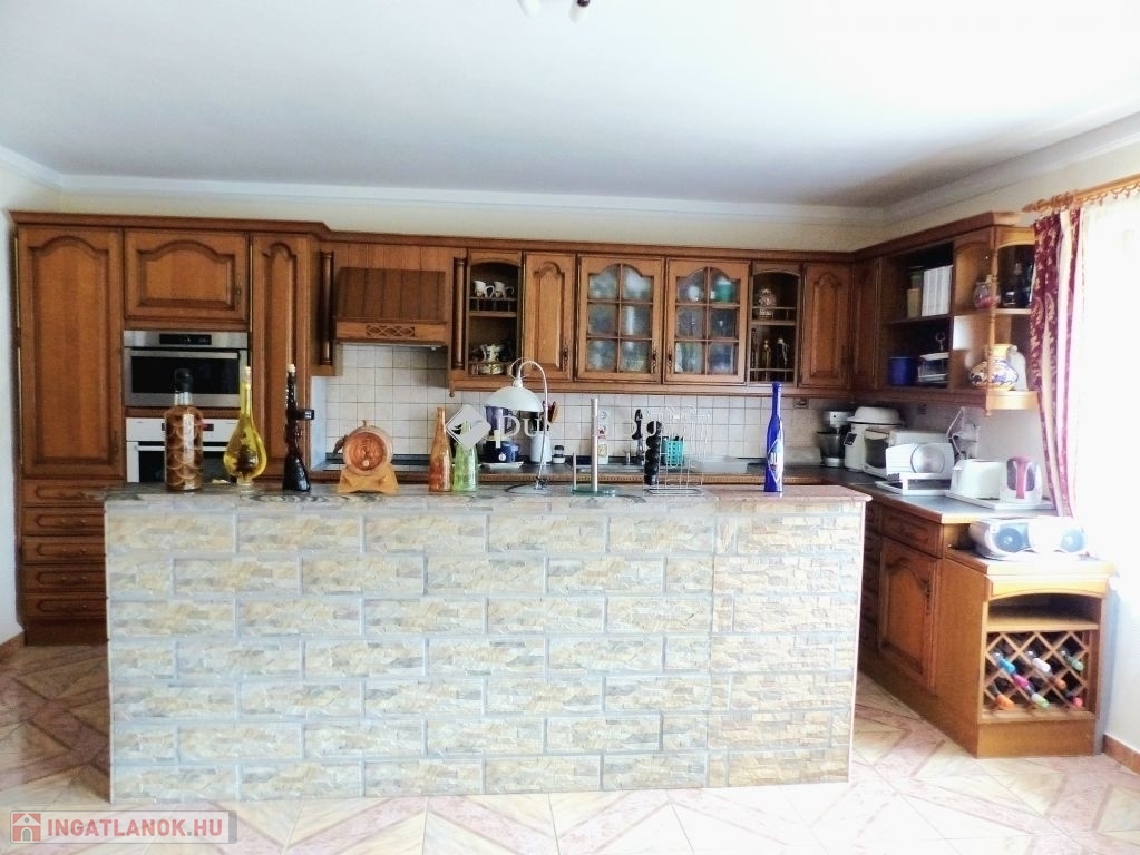 Kozármislenyben eladó egy 180m2-es lakóterű, amerikai konyha nappali+4 szoba, dupla fürdő-WC elosztású családi ház, 857m2-es sík, parkosított telken.