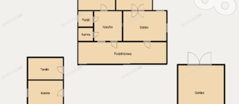 két tágas szoba + 1különbejáratú világos, tágas helyiség amely használható irodának, kisebb átalakítással nappalinak is.