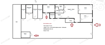 Konyha ; előtér + nappali + étkező, 2 nagy szoba ; fürdő + WC, spájz