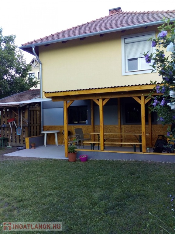 Elosztása: fedett terasz, nappali, konyha, mosószoba, fürdő, illemhelyiség, és 2,5 szoba.