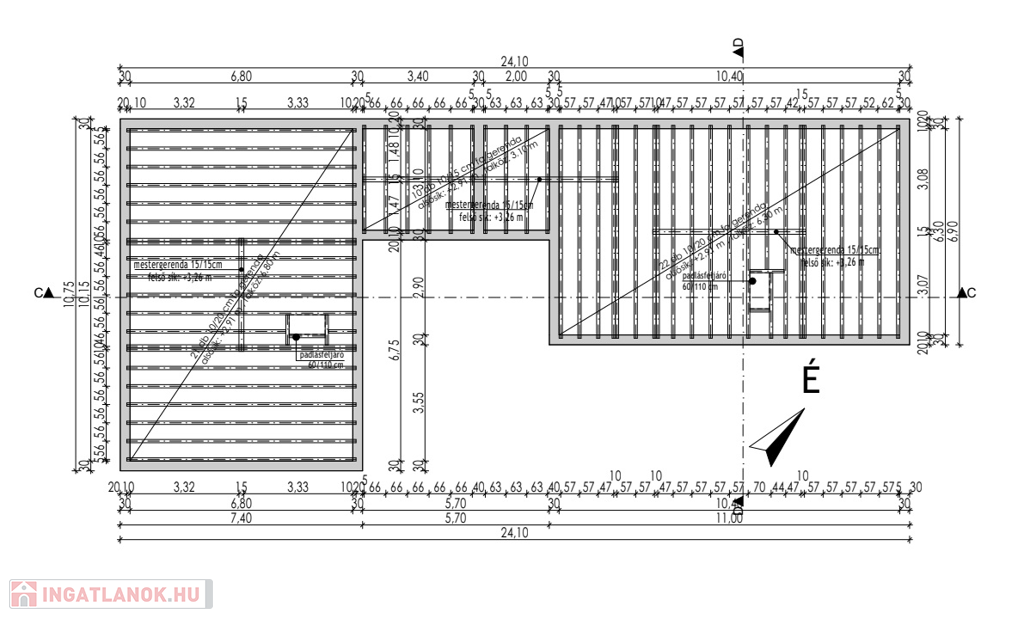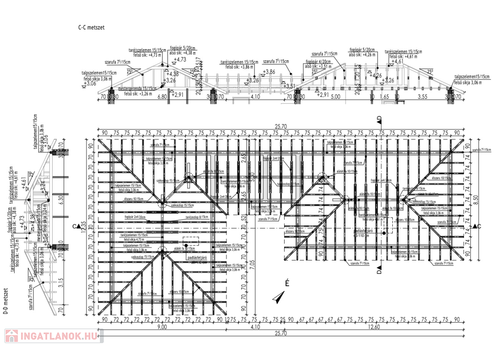 -zárófödém hőszigetelése: szálas hőszigetelés min. 30 cm-es vastagságban