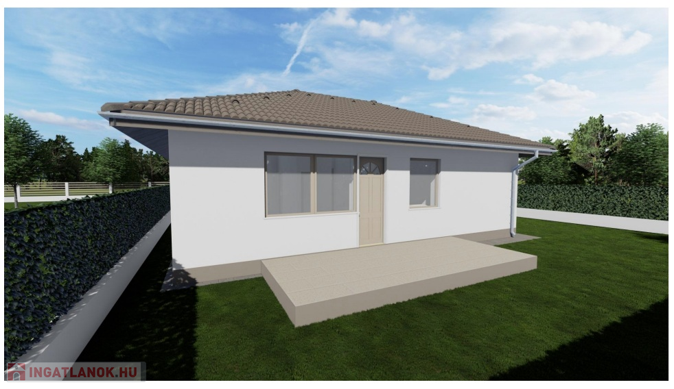 Itt kerül megépítésre- eladásra egy modern, új építésű, tégla szerkezetű családi ház.