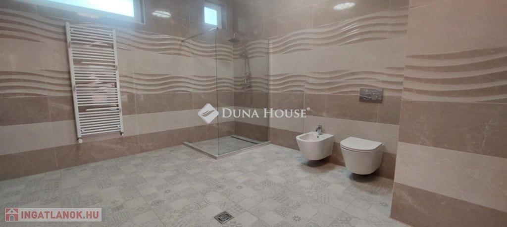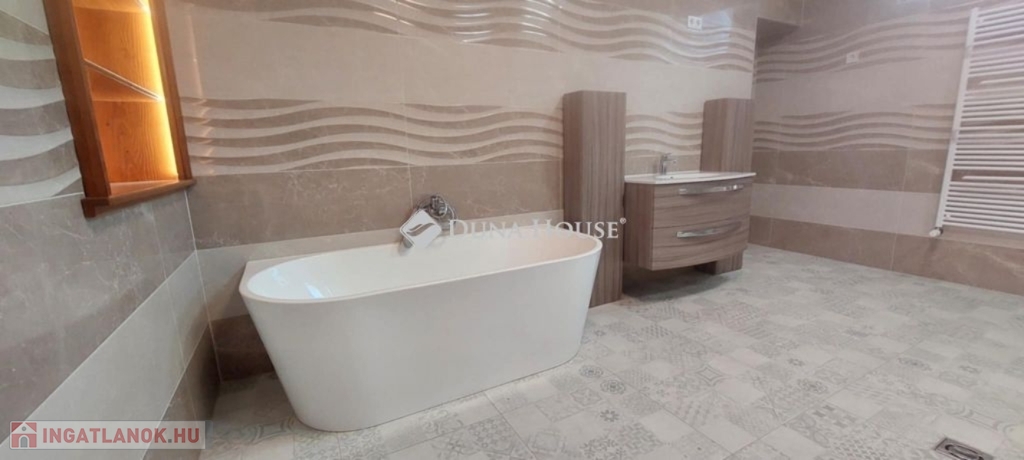 Kádas + zuhanyzós fürdőszoba bidével, WC-vel, mosdószekrénnyel