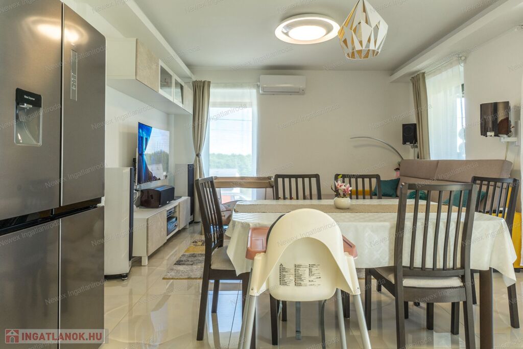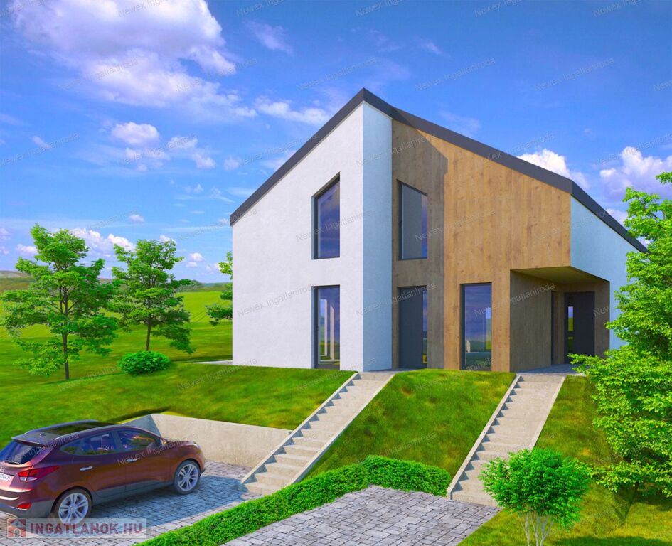 Miskolctól mindössze pár percre, Mályi új, prémium negyedében eladó egy IKERHÁZ MINDKÉT 106 m²-es, 3 szoba + amerikai konyhás nappalis családi ikerház része, mely egy 974 m2-es telekre épül.