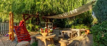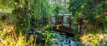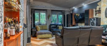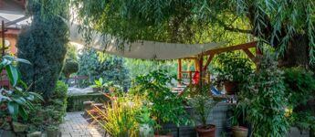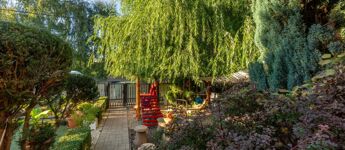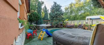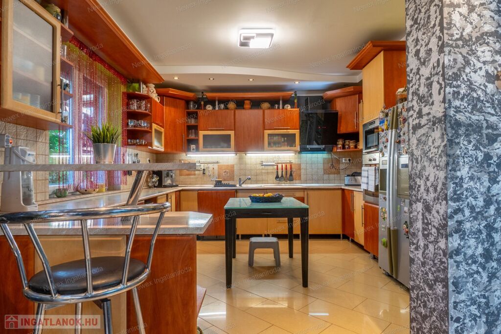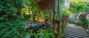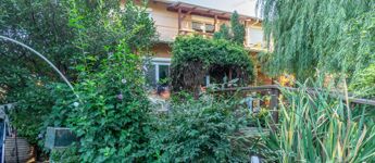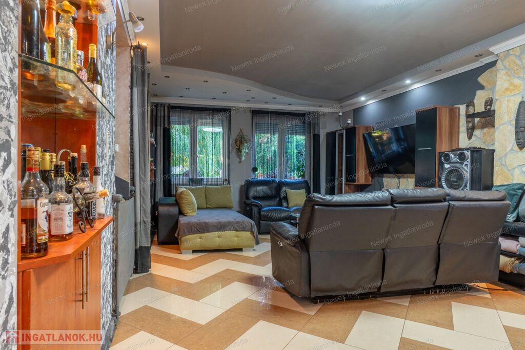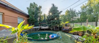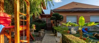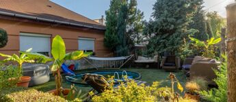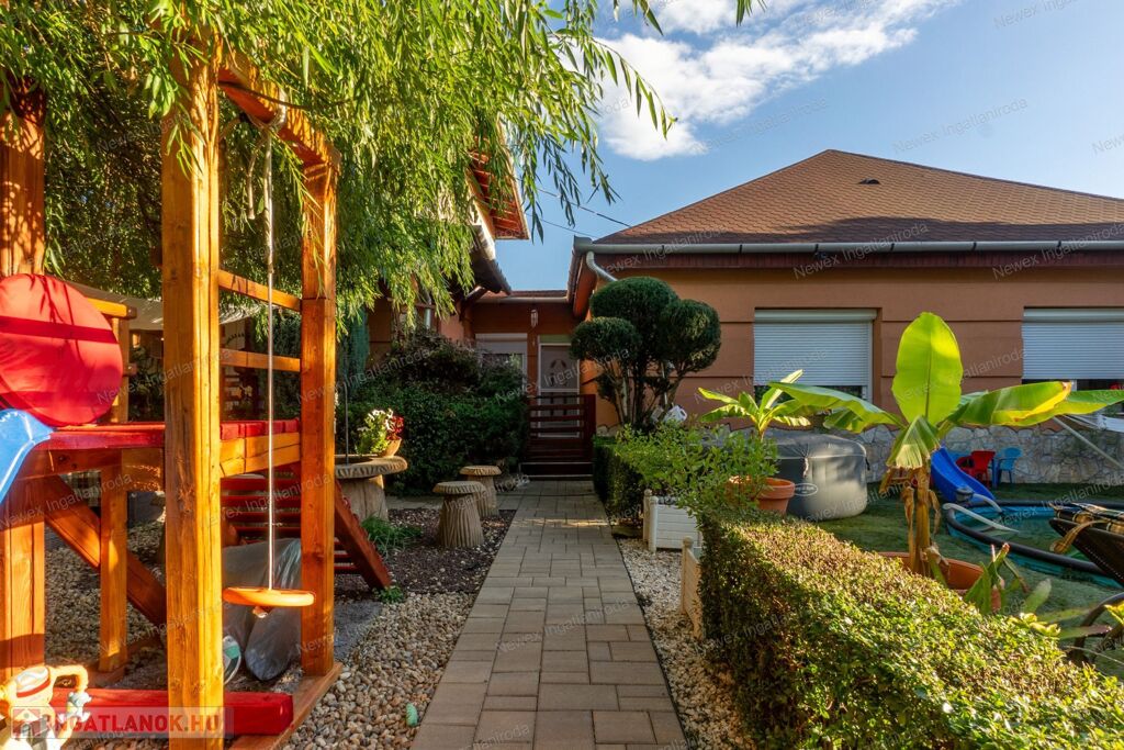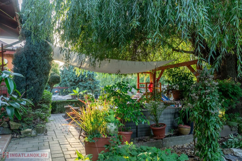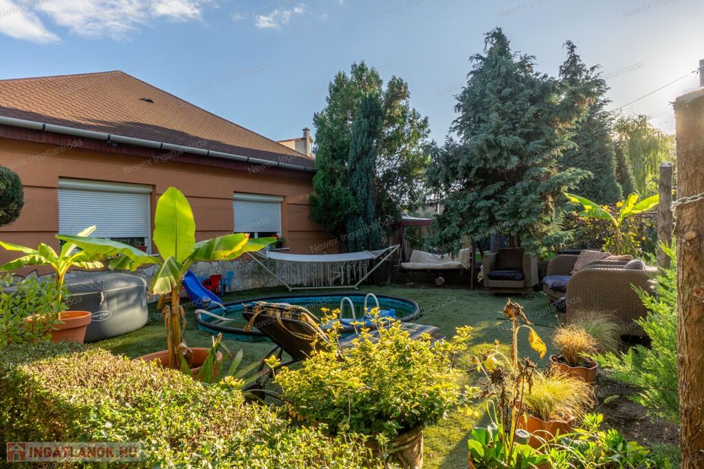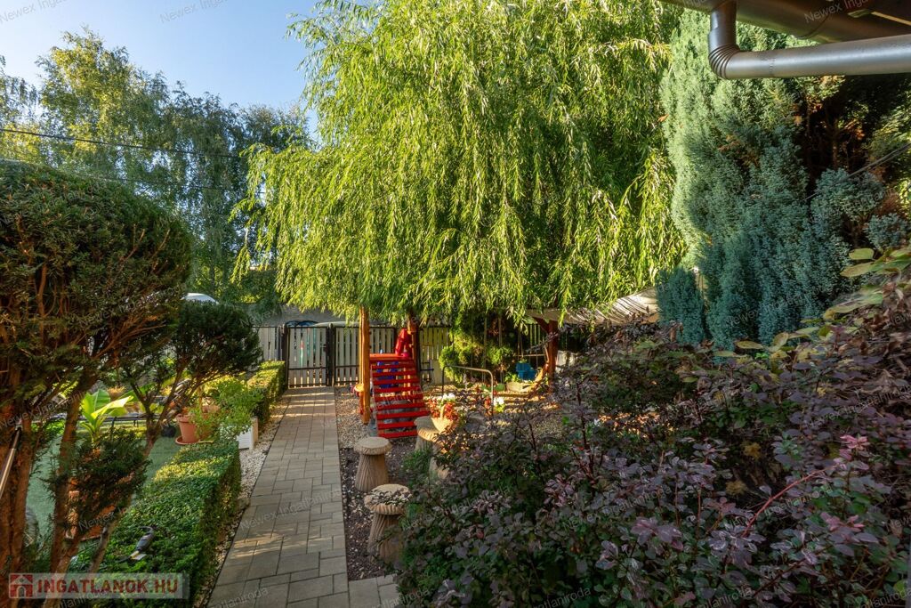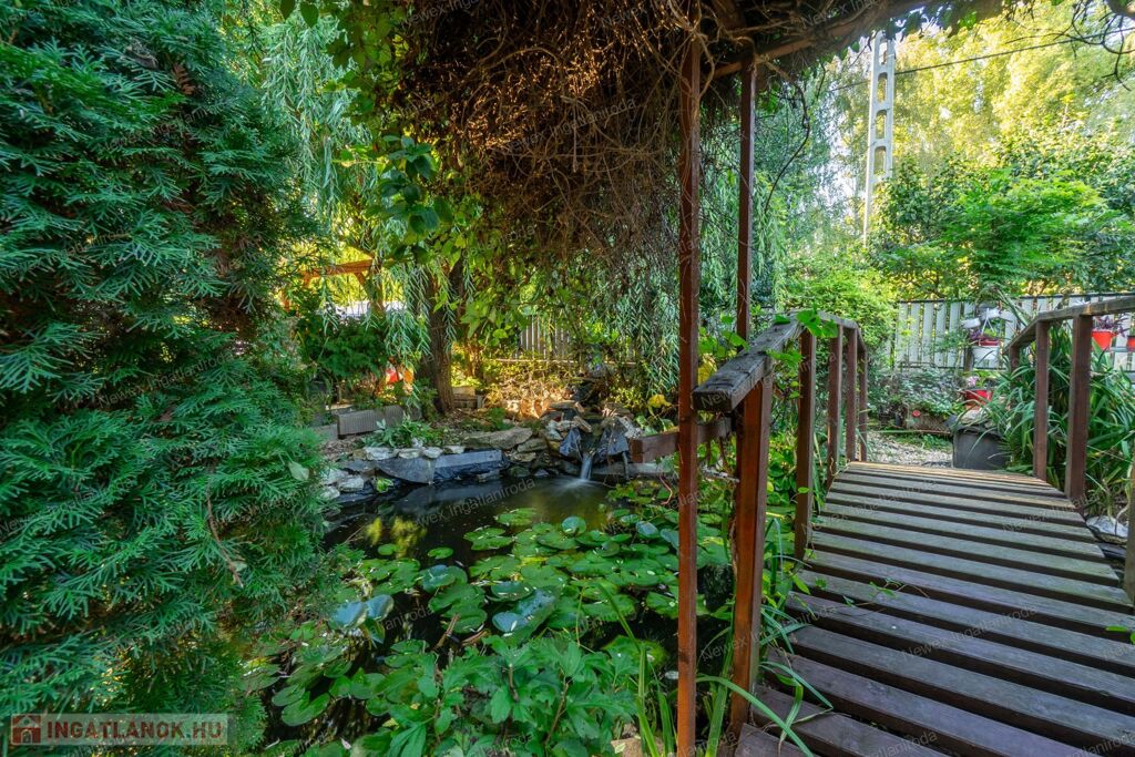 A parkosított, arborétum jellegű kert különleges atmoszférát teremt: saját halastó híddal, gondozott növényállomány, szalonnasütő és hangulatos pihenőrészek szolgálják a kikapcsolódást. Az ingatlan alatt pince is található.