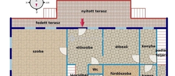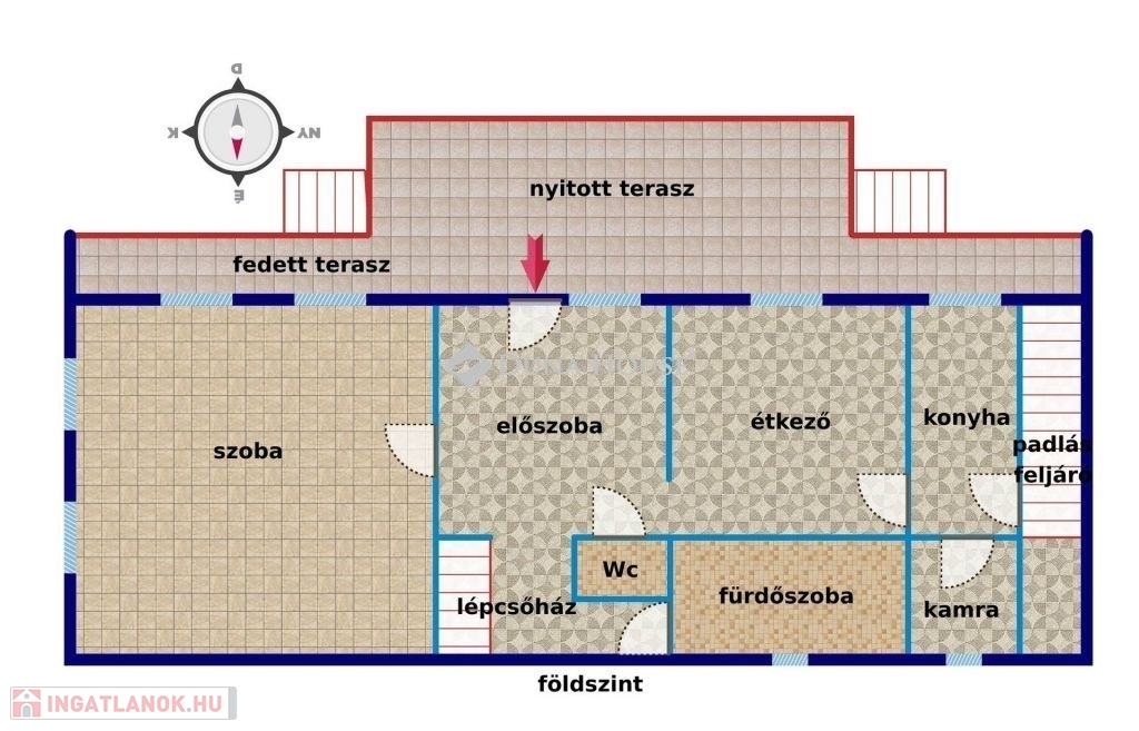 Falazata vegyes, tégla-vályog az alsó szint kőből épült. Tetőcsere és ablakok cseréje megtörtént. A földszinten nappali, előszoba, étkező, konyha, kamra, fürdőszoba külön wc és nagy nyitott terasz található.
