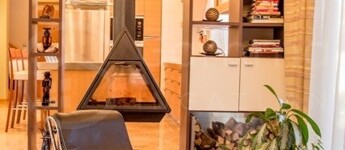 • Burkolatok és design: Listone Giordano parketta, Rimadesio tolóajtórendszer és egy egyedi Don Bar Design kandalló a nappali gyújtópontjában.