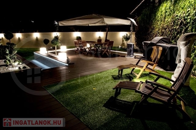 A parkosított udvar automata öntözőrendszerrel ellátott, így a zöld környezet fenntartása gondozásmentes. Az autók biztonságáról egy dupla beállásos, távirányítású kapuval felszerelt garázs gondoskodik, a teljes biztonságot pedig integrált riasztórendszer garantálja.