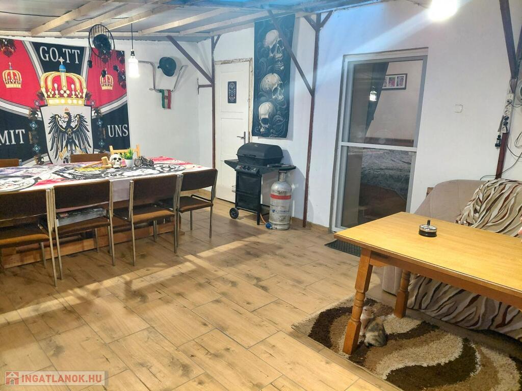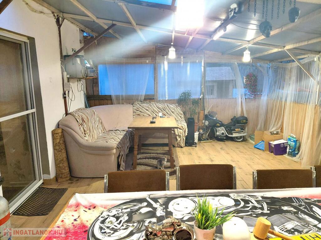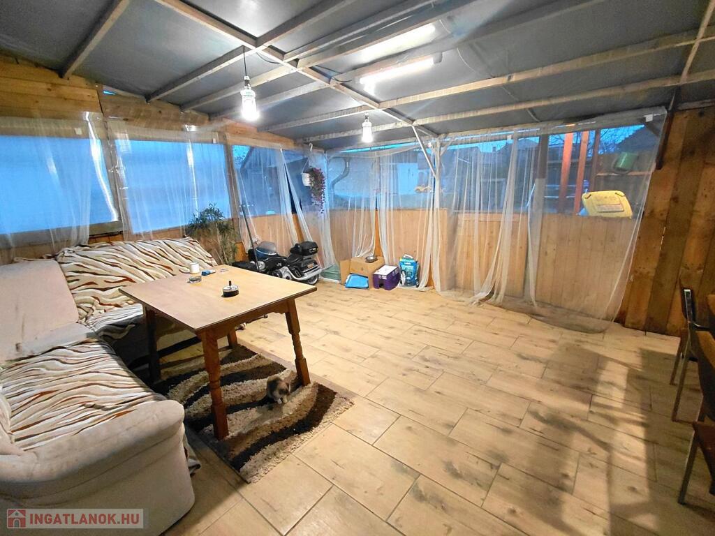 A hátsó szobából közvetlen kijárat nyílik a fedett teraszra.