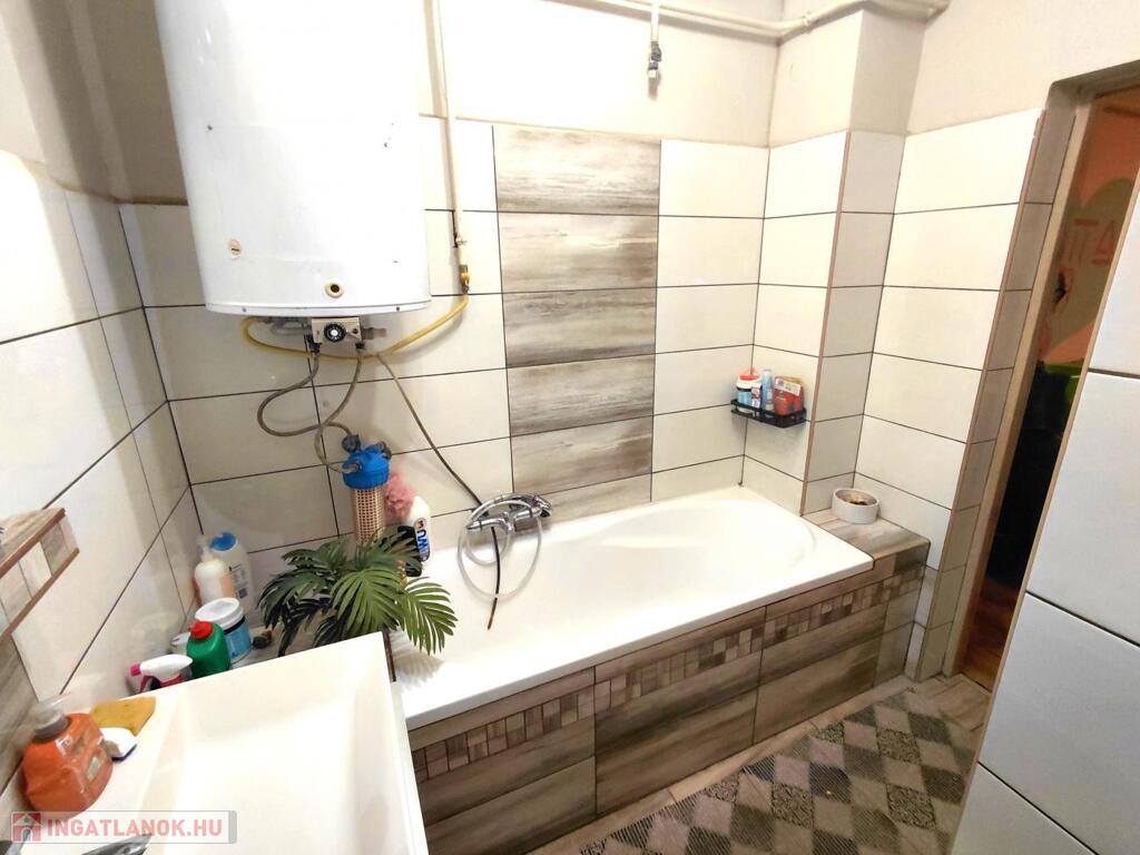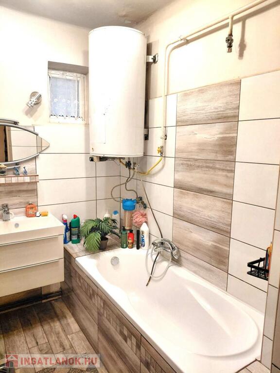 kádas fürdőszoba, új szaniterekkel, víz vezetékekkel és burkolatokkal.