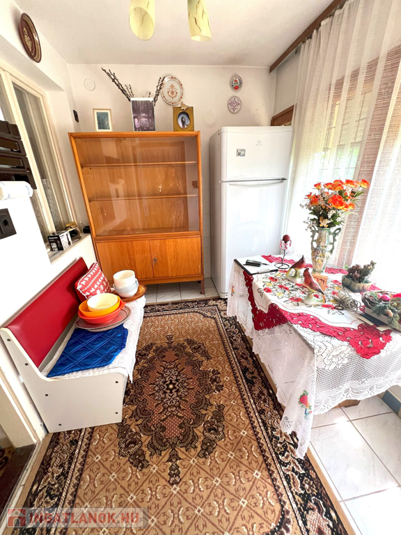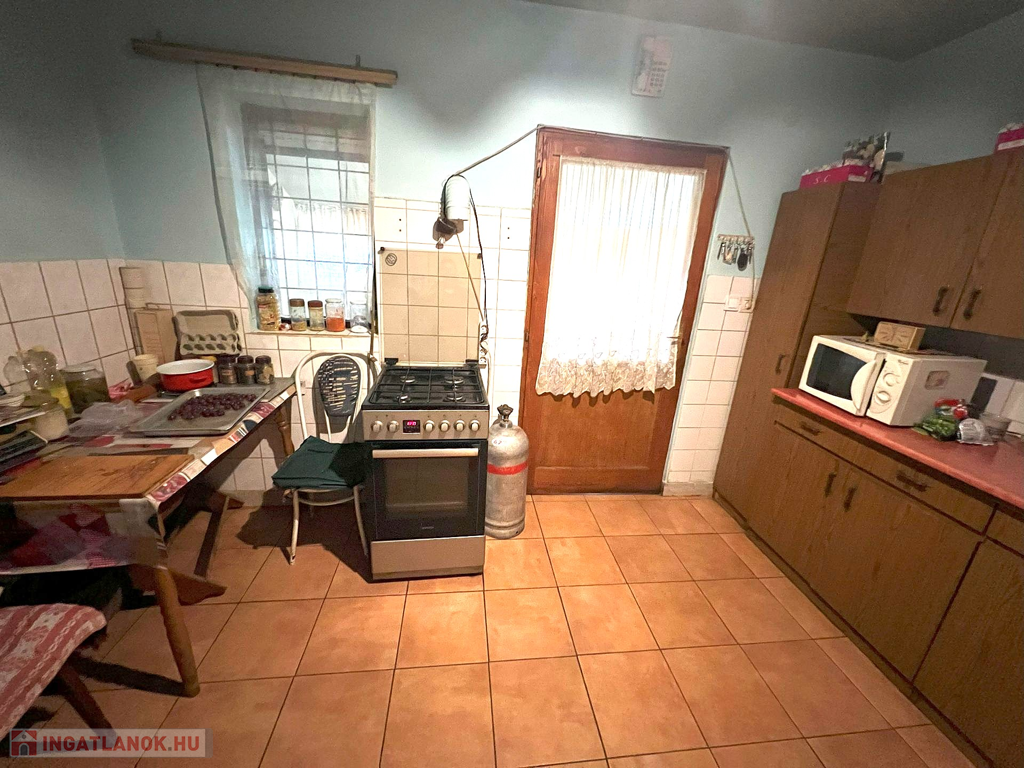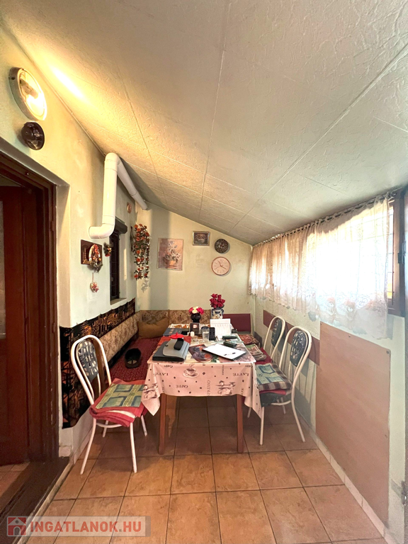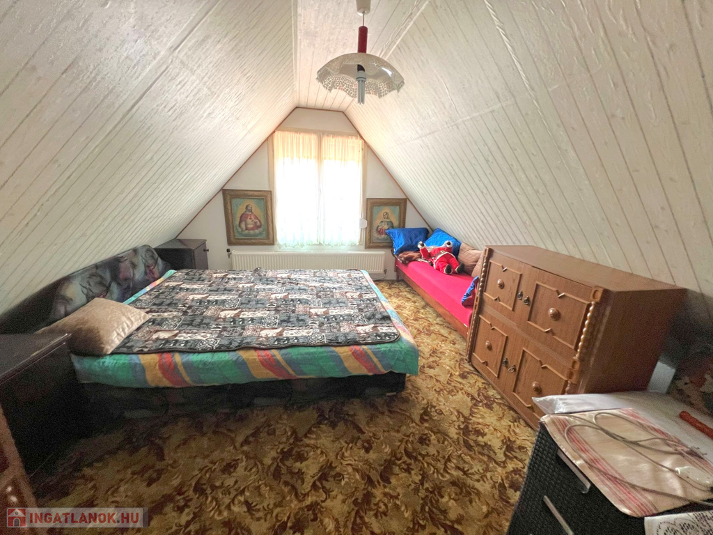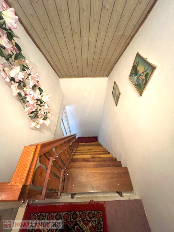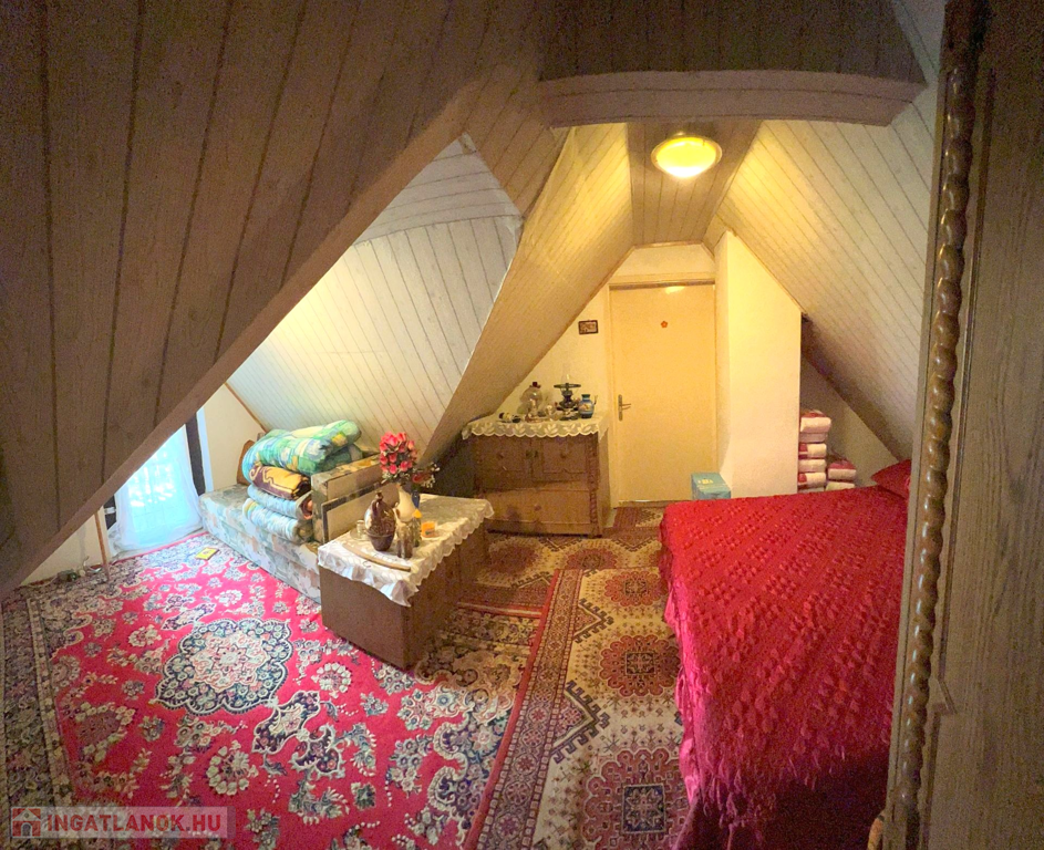 Az ingatlan jellemzői: A ház alapterülete 80 m² és két külön bejáratú lakrészből áll. Az első lakrészben található egy előtér étkezővel, konyha -benne a fatüzelésű kályhával- valamint egy spájz. A másik lakrészben egy előtér, nappali, egy tágas hálószoba és egy zuhanyzós fürdőszoba található. Innen vezet feljáró a tetőtérbe, ahol egy újabb szoba került kialakításra, ahonnan kijuthatunk az erkélyre is.