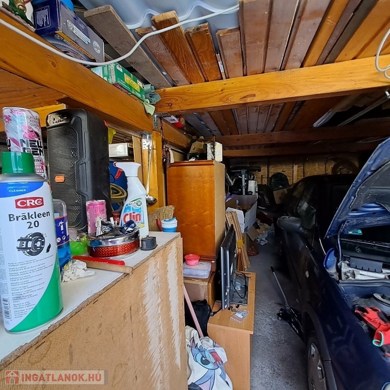 A telken van egy 38 m2-es könnyűszerkezetes garázs.