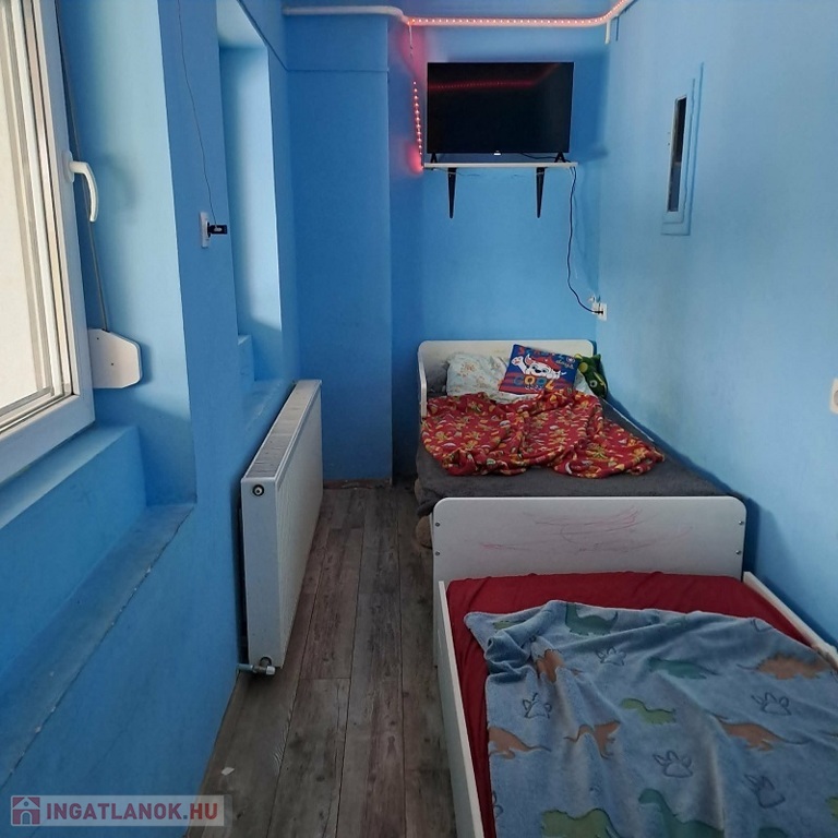 Lakóterülete 54 m2, melyben előtér, 1 (12 m2) + 2 félszoba (5.2 és 6.6 m2), konyha, fürdőszoba és WC található.
