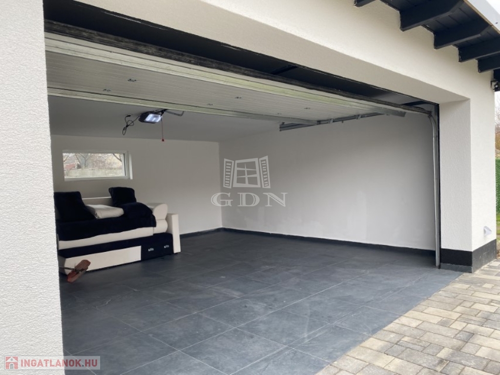 Egy gépesített, közel 50 m2-es amerikai konyhás nappali, egy szülői háló gardróbbal és fürdőszobával, kettő hálószoba, fürdőszoba, kazánház és egy nagyobb, mint kétállásos garázs lett kialakítva. A házhoz kapcsolódik egy 16m2-es fedett terasz is.