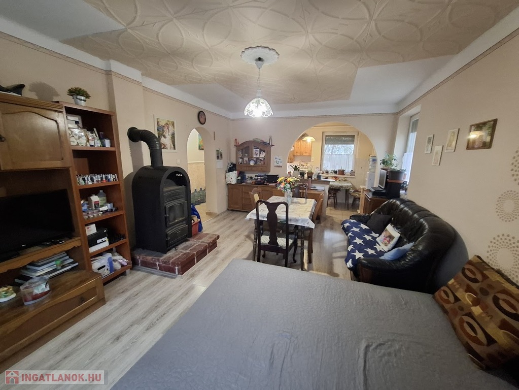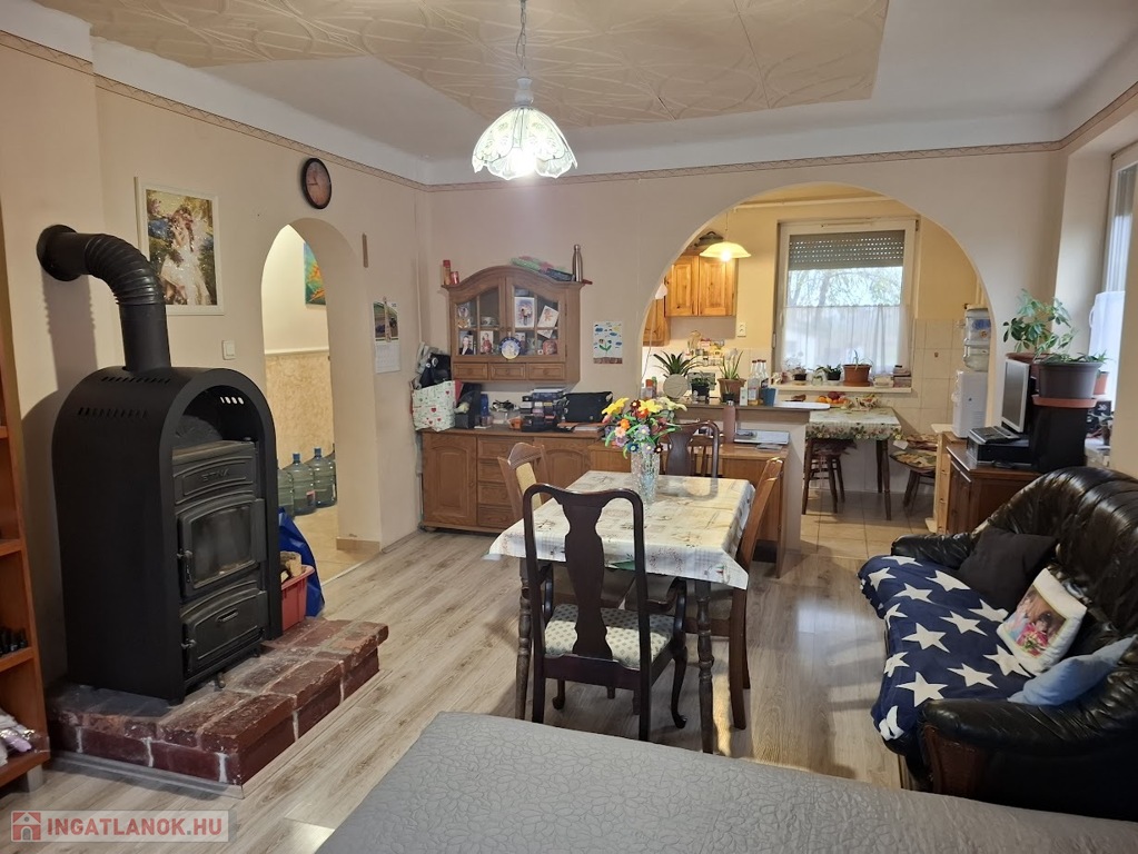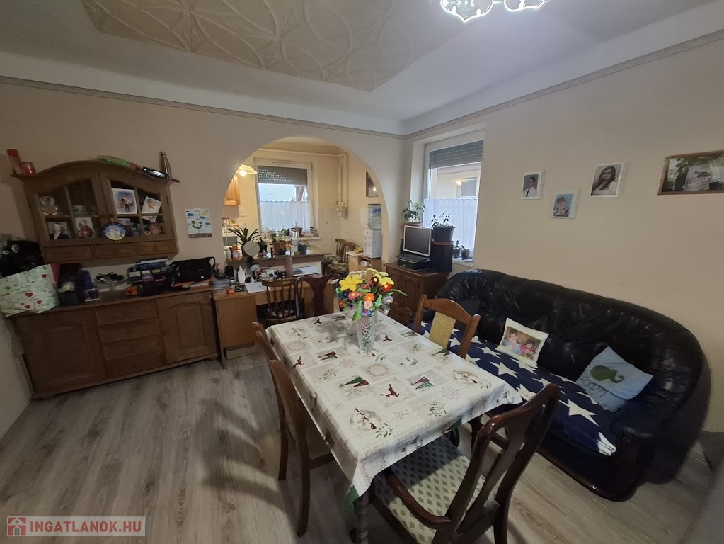 Nádudvaron Farkas István utcán eladó 2 szoba nagy nappalis,75 nm, szépen felújított családi ház, csendes zsákutcában,melléképülettel garázzsal.A ház 2000-ben épült vegyes falazattal magas beton alapon.A fürdőszoba káddal felszerelt és külön van a wc. A tető 2 éve teljes felújítást kapott lemez borítással, fa gerendákkal cserélve.3 rétegű műanyag nyílászárók kerültek beépítésre redőnnyel ellátva és új bejárati ajtó.A villamos hálózat felújítása is megtörtént.A beltéri ajtók cseréje is megtörtént.A nappali és folyosó újra burkolt.A ház külső nemes vakolatot kapott.Tartozik hozzá fedett terasz.A fűtést gáz konvektor és a nappaliban beépített kandalló biztosítja.A ház előkerttel rendelkezik nem utcafronti.A melléképület is konvektorral fűtött akár lakhatásra is kialakítható.Tartozik hozzá egy lemez garázs is.Jó szomszédok és nyugodt környék jellemzi.Érdemes megnézni.Az ár irányár.További ingatlanjaink a Teleingatlan oldalán több nyelven is hitel ügyintézéssel és ügyvédi segítségnyújtással egybekötve.Bármikor megtekinthető időpont egyeztetéssel.