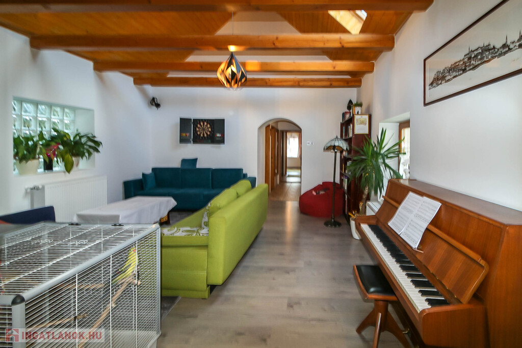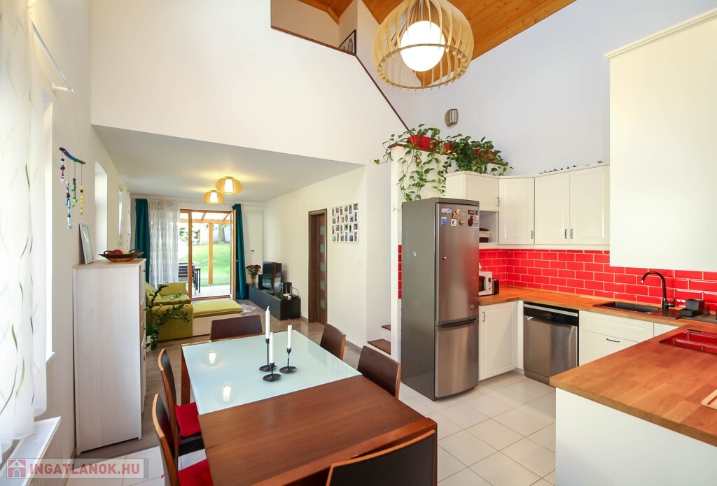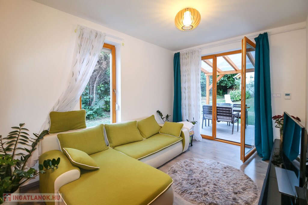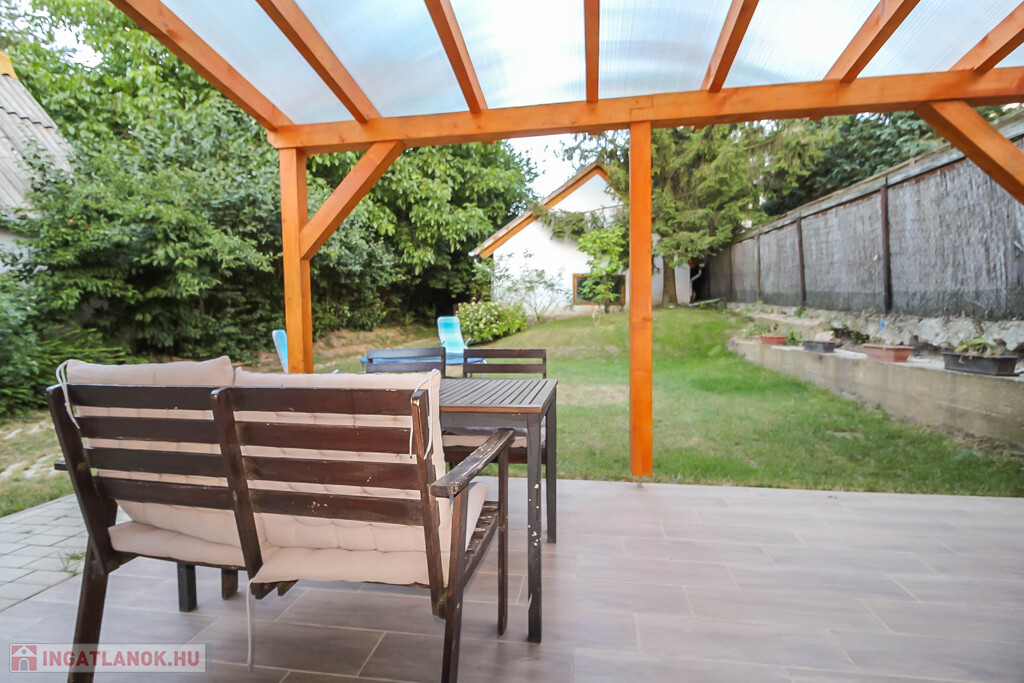 BRANDNEUES GARTENHAUS IN NAGYKOVACSI ZU VERKAUFEN! Das Viertel ist die beliebteste Siedlung im Ballungsraum Buda. Seine Infrastruktur deckt alle Bedürfnisse des täglichen Lebens ab. Darüber hinaus verfügt es über hervorragende Umwelteigenschaften und ein großartiges soziales Netzwerk, was den Umzug hierher nur noch attraktiver macht. Bei dem im Jahr 2020 zum Verkauf angebotenen Einfamilienhaus in Backsteinbauweise handelt es sich um einen Anbau an ein siedlungstypisches Gebäude, das selbstverständlich den Anforderungen entsprechend saniert und verstärkt wurde. Abmessungen: Nutzfläche des Hauses: 124 m2, Terrasse: 20,6 m2, Garage: 45 m2, Abstellraum: 33 m2, Grundstück: 1174 m2. Der obere Teil des riesigen Grundstücks bietet Panoramablick und bietet zusätzliche Möglichkeiten, es eignet sich sogar für den Bau eines Schwimmbades. Die ordnungsgemäße Isolierung von Dach und Wänden ist der Beweis dafür, dass es selbst in der Sommerhitze ohne Klimaanlage nur 25-26 Grad Celsius hat. Seine Energieklassifizierung ist CC. Die Warmwasserversorgung und Heizung erfolgt über einen modernen Gas-Thermokessel, letzterer mit Fußbodenheizung und Plattenheizkörper-Wärmeabgabe. Auch die Innenfläche des Gebäudes kann durch den teilweisen Einbau des ersten Obergeschosses noch weiter vergrößert werden, diese beträgt 14m2. Den Mittelpunkt des Hauses bildet die Küche mit Esszimmer, von hier aus gehen die Nebenräume und Abstellräume ab, deren genaue Anordnung und Maße dem Grundriss entnommen werden können. Bei Interesse rufen Sie mich gerne schnellstmöglich an!