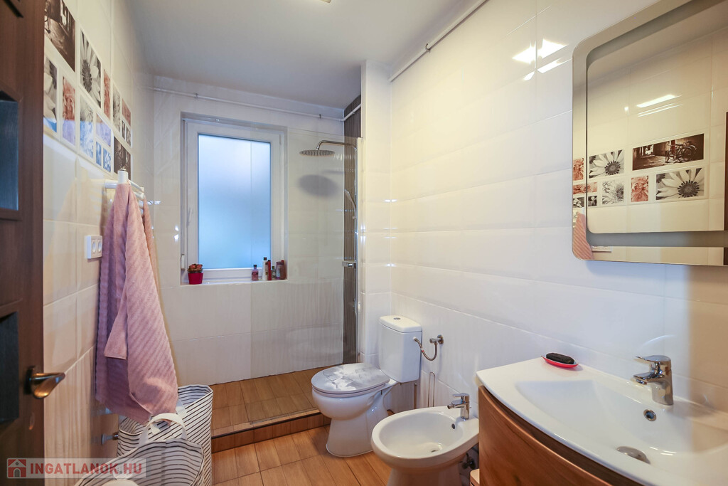 A hatalmas telek felső része panorámás, további lehetőségeket rejt magában, akár medence építésre is alkalmas. A megfelelő tető- falazat szigetelésről tesz tanúbizonyságot, hogy a nyári nagy melegben is csak 25-26 Celsius-fok van, légkondicionálás nélkül. Energetikai besorolása CC. A melegvíz ellátást és fűtést korszerű gázcirkó kazán biztosítja, utóbbit padlófűtéses, valamint lapradiátoros hőleadással. Az építmény belterülete is tovább növelhető az emelet részbeépítésével, mely 14m2. A ház központja az étkezős konyha, innen nyílnak a további helységek, extra tárolók, melyek pontos elrendezését méreteikkel együtt alaprajzon szemléltetem.